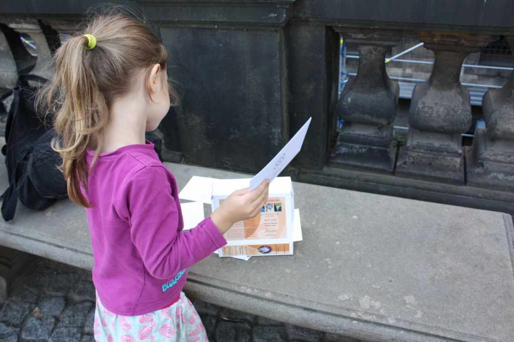 Letztes Jahr durfte ich das Kinder-Stadtspiel für Dresden testen, bei dem wir die Stadt gemeinsam erkundet haben. Das Stadtspiel ist eine Box mit Karten, die einen Umschlag für Umschlag in einer Schnitzeljagd durch die Stadt führt.
