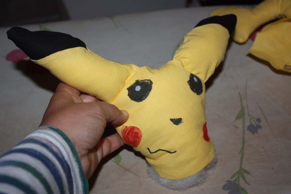 7 – Ich habe einen Pikachu selbst genäht. (Das Gesicht malte Maxi.)