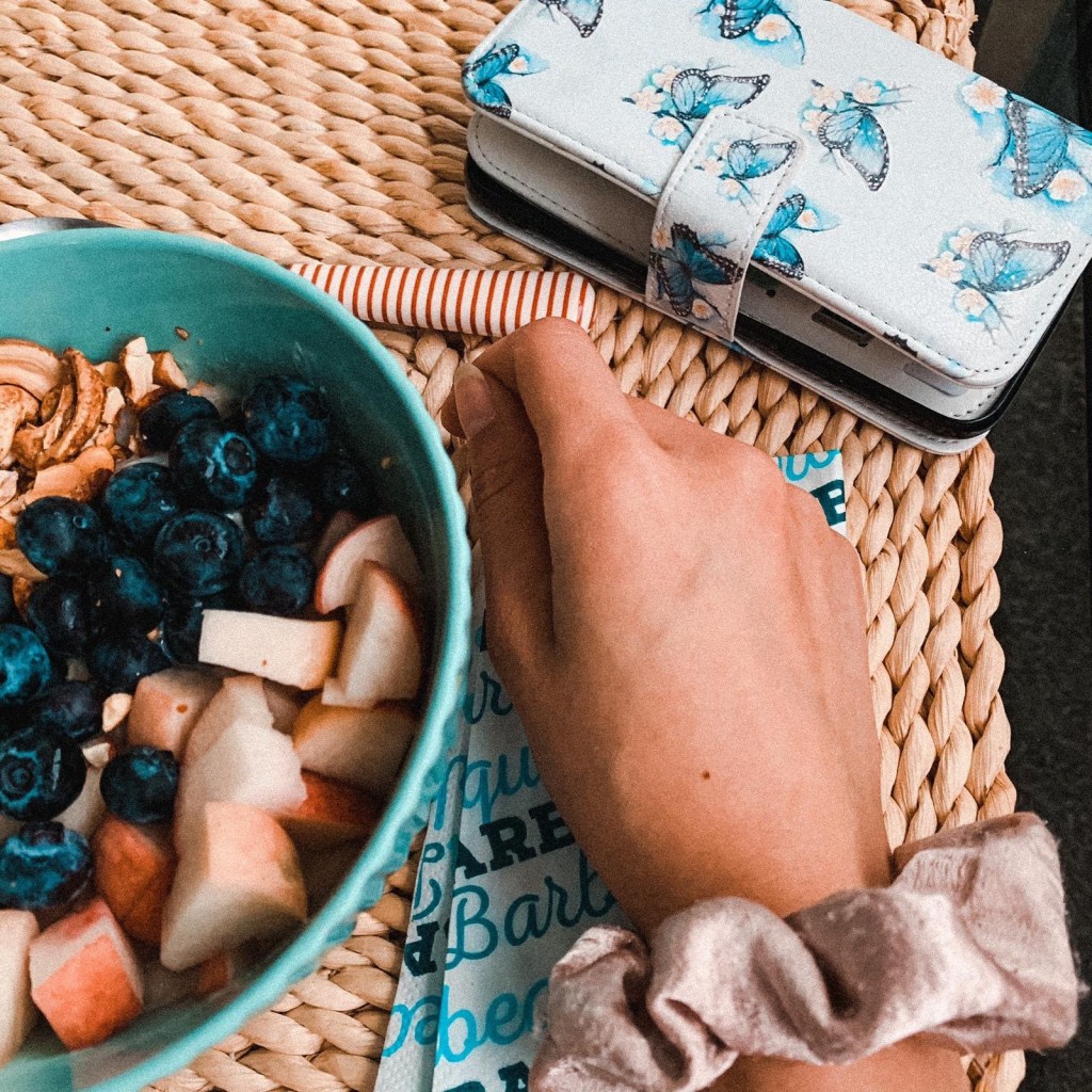 Das Tolle an den Handyhüllen ist, dass man sie inzwischen in den verschiedensten Varianten online kaufen kann. Hier oben im Bild siehst du eine Hülle für das iPhone 12 von huellendirekt.de. Dort kann man eigene Motive hochladen und auf die Hülle drucken lassen oder eins der fertigen Designs auswählen. Die Klapphülle mit den Schmetterlingen finde ich echt schön! Und praktisch: hier können auf der linken Innenseite noch Karten und Notizen verstaut werden.
