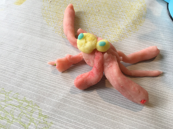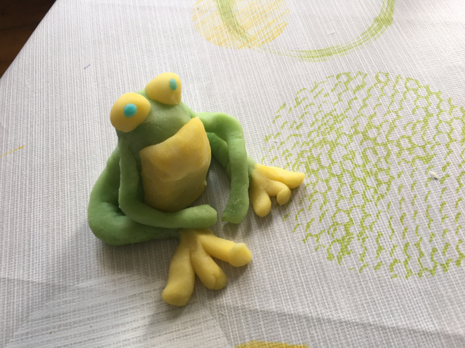 Wir probierten noch etwas anderes aus: Die Figuren dauerhaft haltbar zu machen, um sie als Dekoration ins Kinderzimmer zu stellen. Dafür mussten wir die Tiere eine Woche lang auf der Heizung trocknen lassen und dann 30-60 Minuten bei 150°C im Backofen backen.