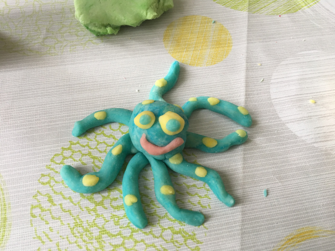 Ihre Farbe büßten die Knettiere durchs Trocknen leider ein, doch fest sind sie geworden und zieren nun die Fensterbank im Kinderzimmer.