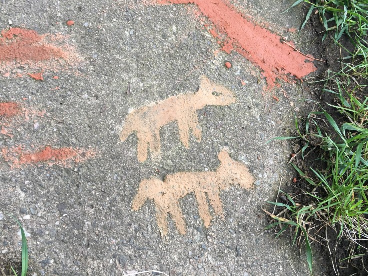 Zufällig erhielten wir mitten in unserem Steinzeit-Fieber gestern eine „Kunstpost“ vom Johannstädter Kulturtreff, der sein Offenes Atelier aufgrund der Pandemie zu den Kindern nach Hause bringt. Die künstlerische Leitung liegt bei Katrin Bohnacker, Künstlerin und Keramikerin. So kam es also, dass wir gestern drei verschiedenfarbige Tonpulver erhielten, mit denen sich meine Töchter an der Höhlenmalerei versuchen konnten.