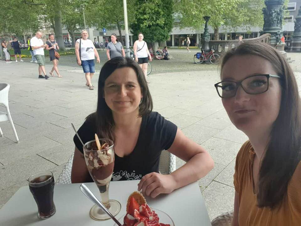 25 – Eis essen an der Elbe: Mit meiner Freundin, die gerade schwanger ist, war ich im Eiscafé und wir haben es uns gut gehen lassen.