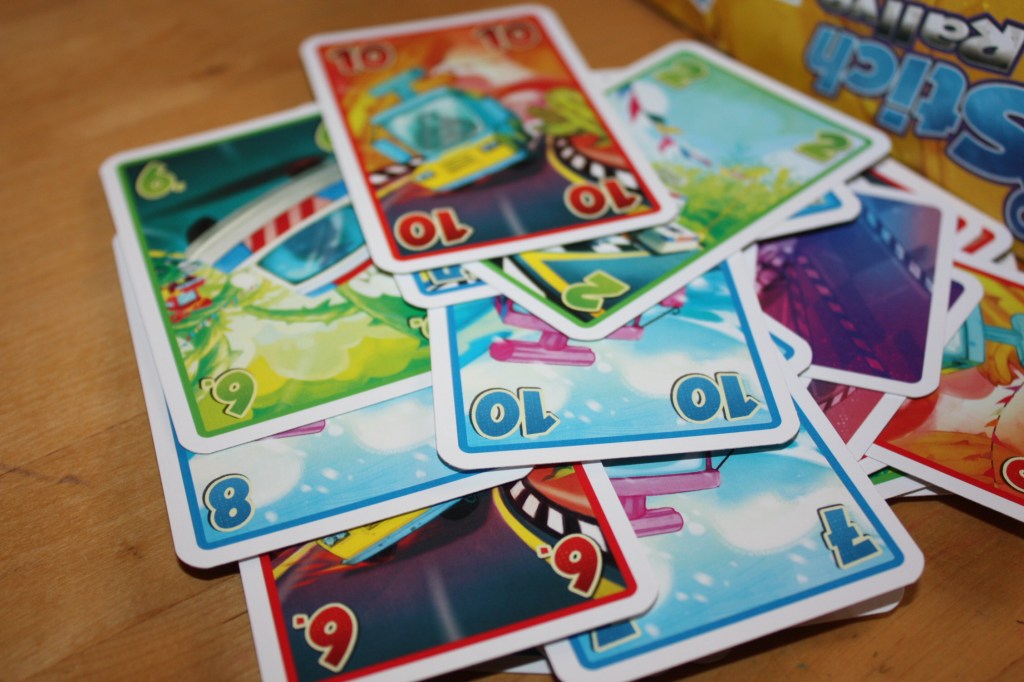 Mir gefällt an dem Gesellschaftsspiel, das wir es alle zusammen spielen können und jeder Spaß macht. Durch die einfachen Regeln ziehen die Runden angenehm schnell vorüber. So bleibt jeder am Ball! Außerdem hat kein Spieler einen Vorteil, nur weil er älter ist und besser lesen oder „um die Ecke denken“ kann. Natürlich verschafft man sich durch taktische Überlegungen einen Vorteil, aber man weiß nicht, welche Karten die anderen spielen. Und in welchem Moment sie diese spielen. Strategie und Glück halten sich die Waage.