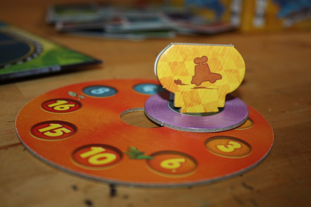 Wer den Stich nicht gewonnen hat, also alle anderen Spieler, darf auf dem Motor-Tableaus drehen und beim nächsten Stich mehr Felder gehen. Es lohnt sich also, den Motor aufzuziehen und erst dann einen Stich zu gewinnen.
