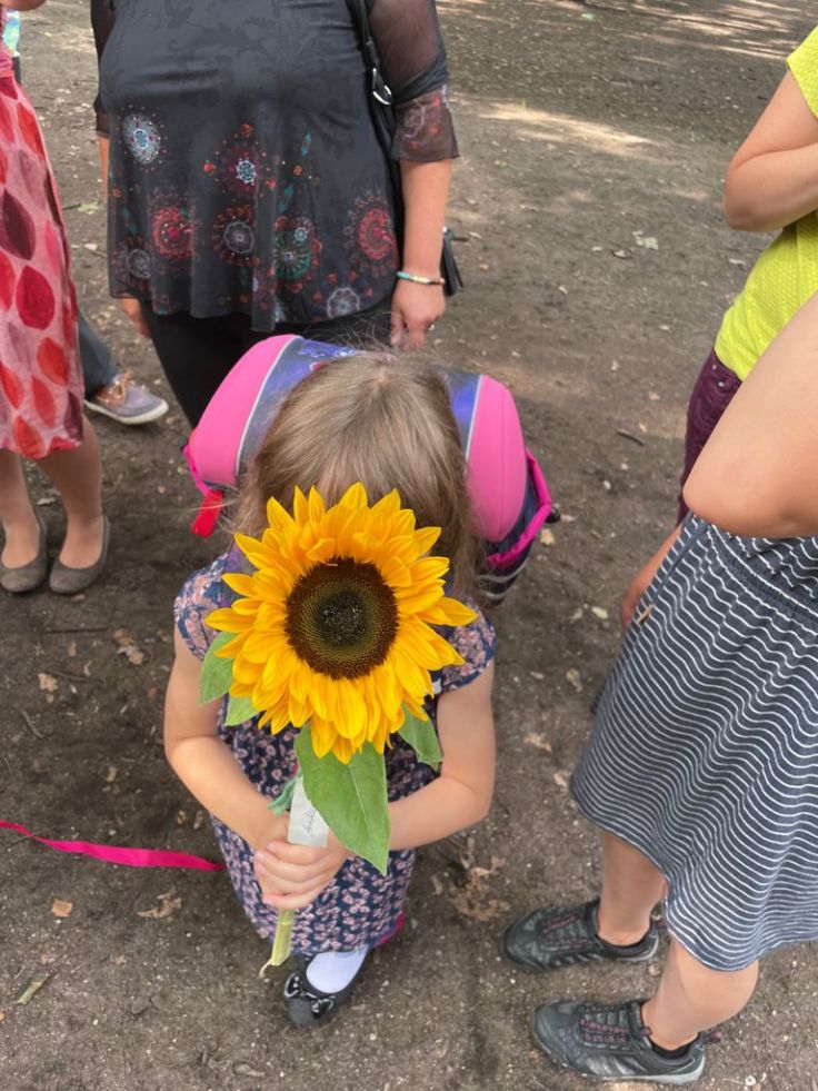 „Schau, was ich schon alleine kann!„, zeigt mir meine Tochter die Wollfäden in ihrer Hand und fängt an zu stricken. Ich freue mich, dass sie jeden Tag ein neues Freundebuch oder die Einladung zu einem Kindergeburtstag mit nach Hause bringt (was im Kindergarten sehr selten vorkam). Sie flötet erste Töne auf der Sonnenflöte und sitzt nachmittags kichernd mit ihren Freundinnen und Freunden unter einem Haselnussstrauch, wenn ich sie abhole.